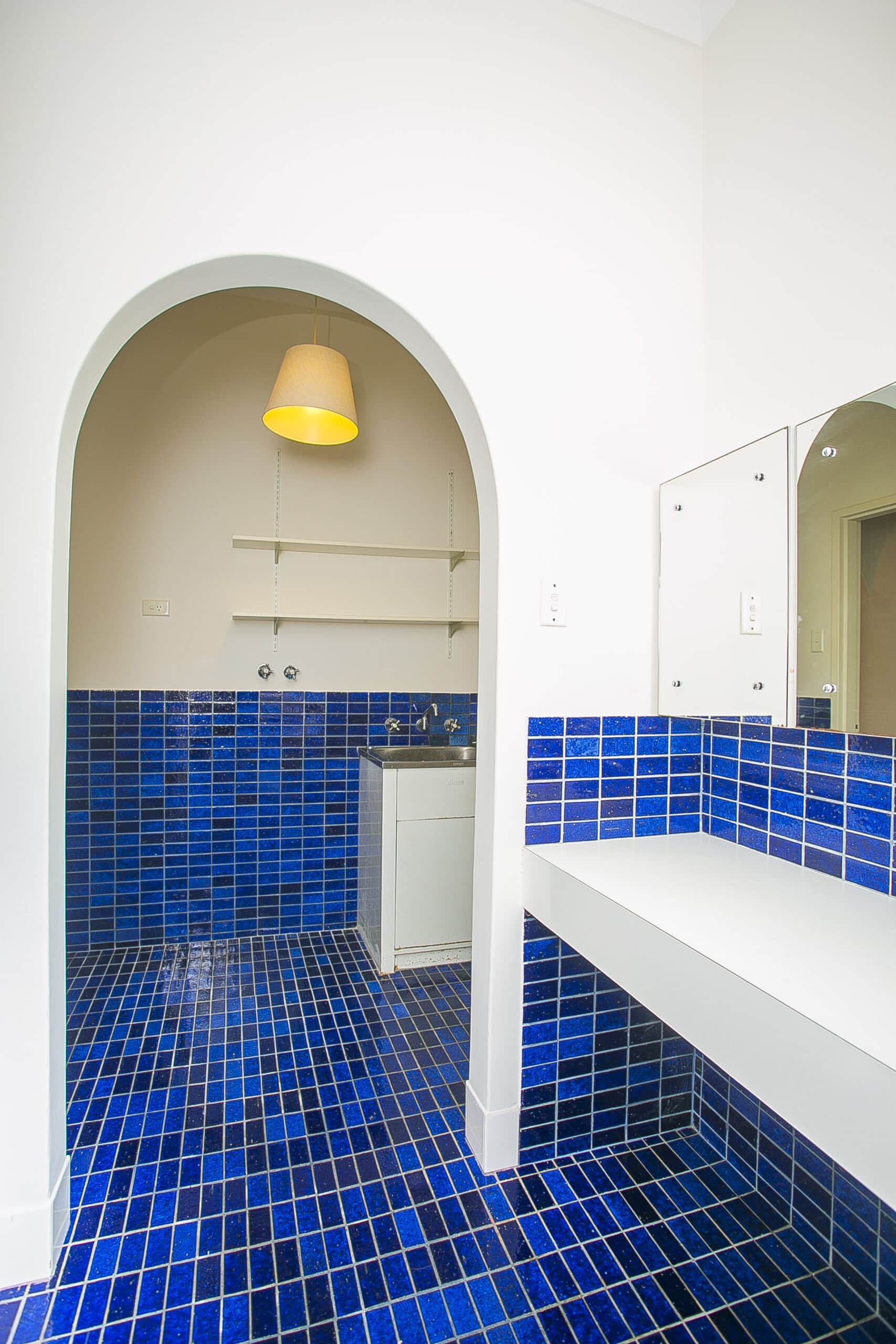 The standout design element is the archway, which was incorporated throughout the space. The existing arch from the laundry was mirrored in the vanity and mirror, creating a harmonious flow between the rooms. This subtle design repetition adds visual interest and a sense of continuity. The laundry itself, though compact, was carefully planned to maximise storage, with functional cabinetry, ample countertop space, and easy access to the essentials.